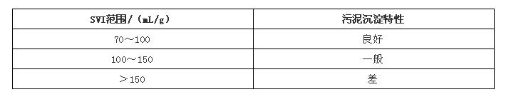 污泥容积指数(Sludge Volume Index,简称SVI)通过将反应器内混合液置于1L的量筒内,静置30 min后的沉淀污泥容积,除以混合液悬浮固体质量浓度来确定,其单位是mL/g,即SVI能够更好地评价活性污泥的凝聚性能和沉淀性能,其值过低,说明粒径细小、密室,但无机成分多;过高又说明污泥沉降性能不好,将要或已经发生污泥膨胀。处理城市污水的活性污泥的SVI值一般介于50~150mL/g之间。下表总结了SVI与活性污泥沉淀的关系。SVI<50mL/g说明污泥活性太低,而SVI=150mL/g常被作为污泥是否膨胀的界限。