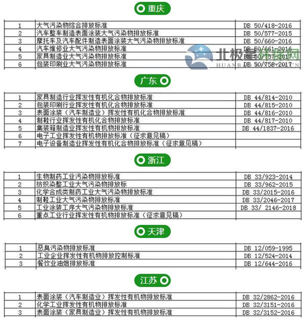 关于挥发性有机物排放标准(VOCs)的地方标准,目前已经发布的有这些