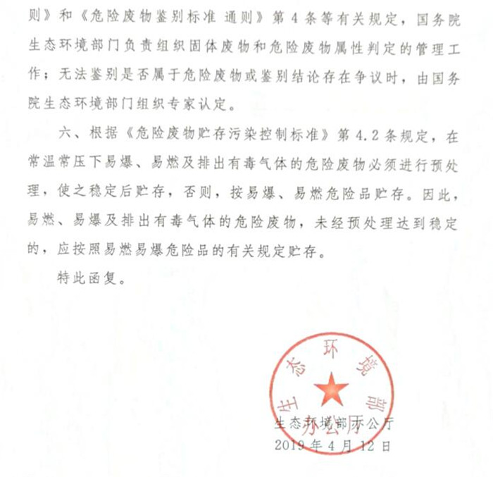 关于废弃危险化学品、化工生产企业中间物料等环境监督有关问题的复函