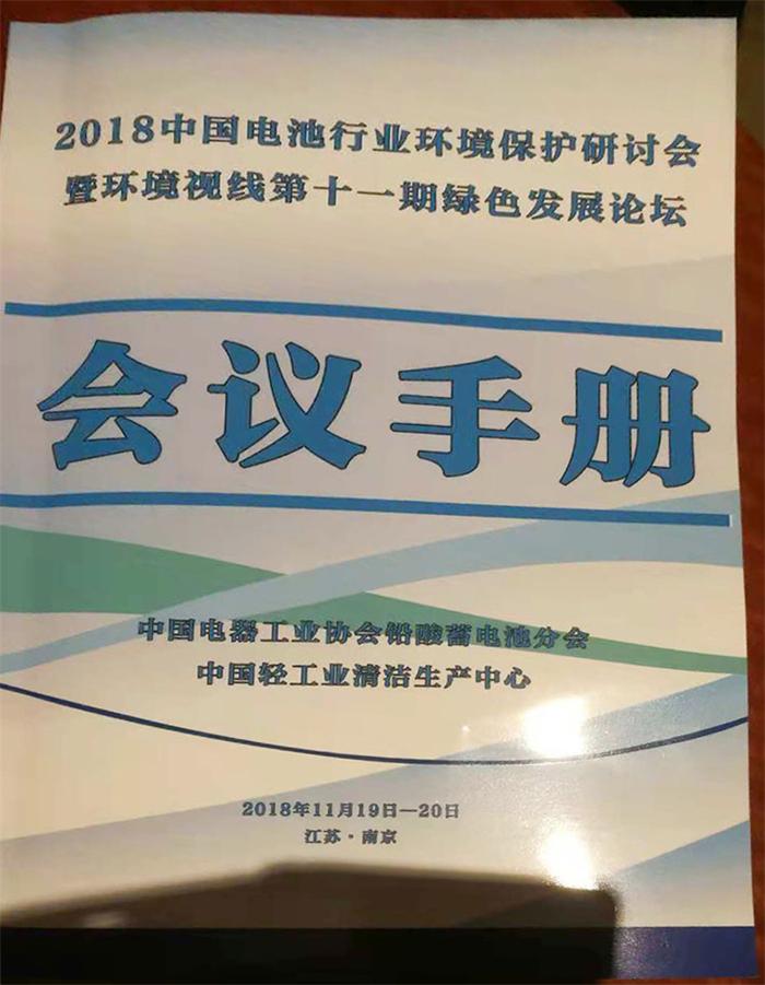 热烈祝贺伟杰环保刘玉平总经理参加2018中国电池行业环境保护研讨会,暨环境视线第十一期绿色发展论坛在中国南京召开取得圆满成功。
