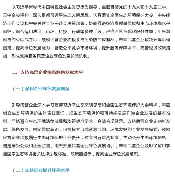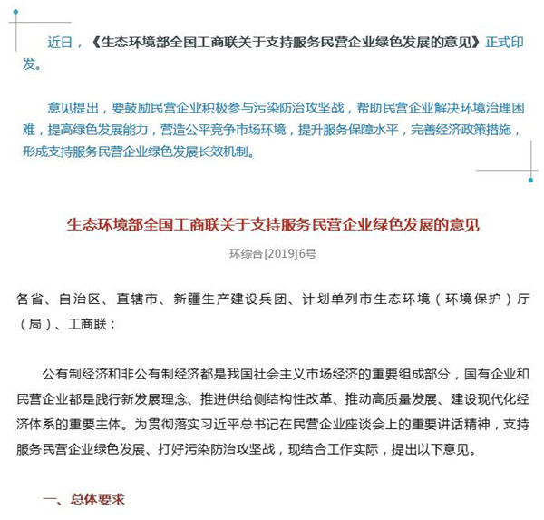 生态环境部、全国工商联出台意见 民营企业绿色发展将迎重大利好