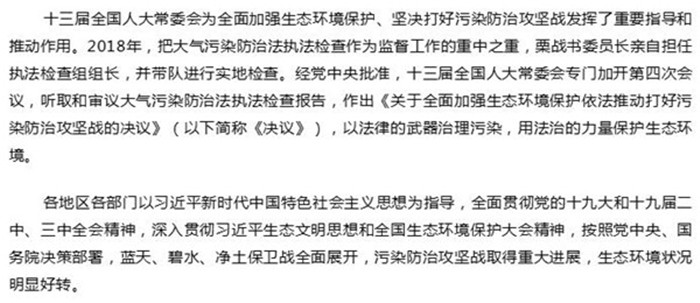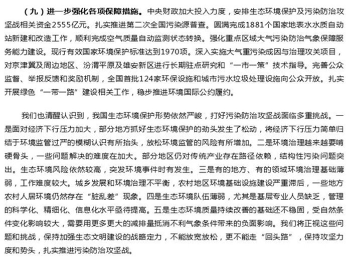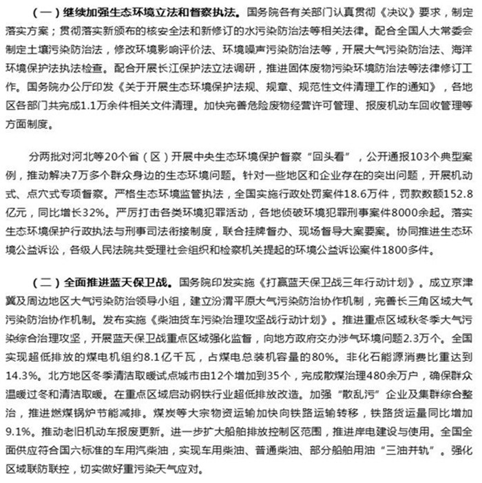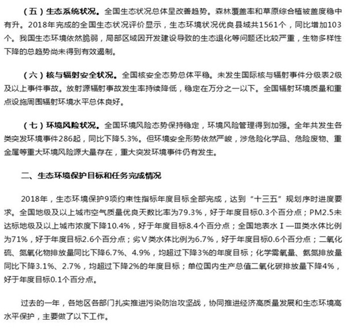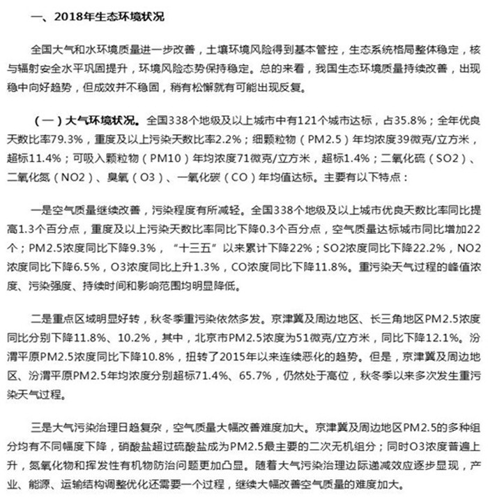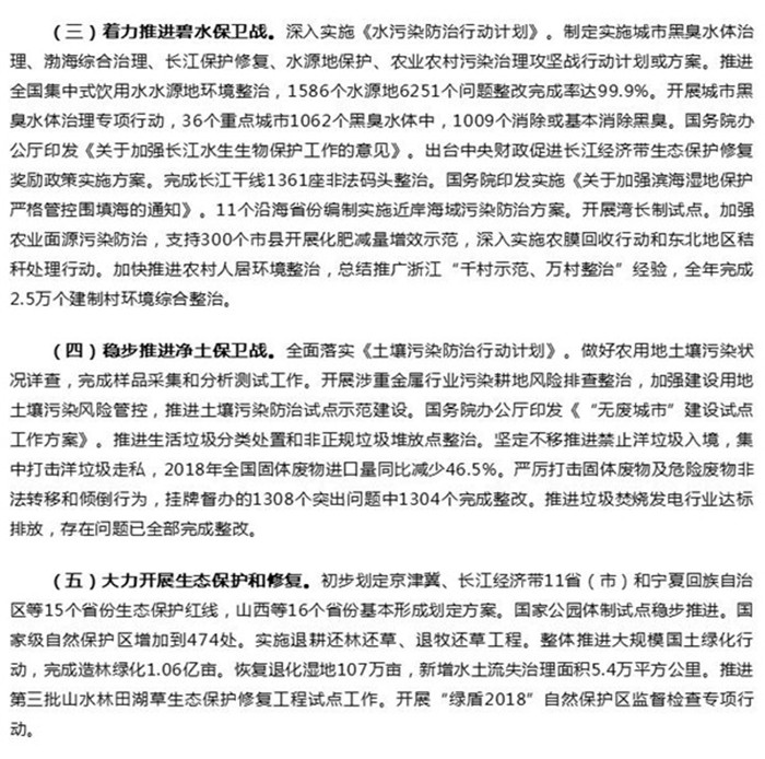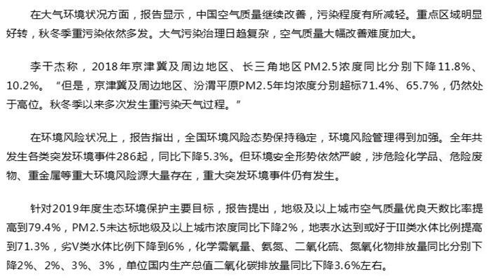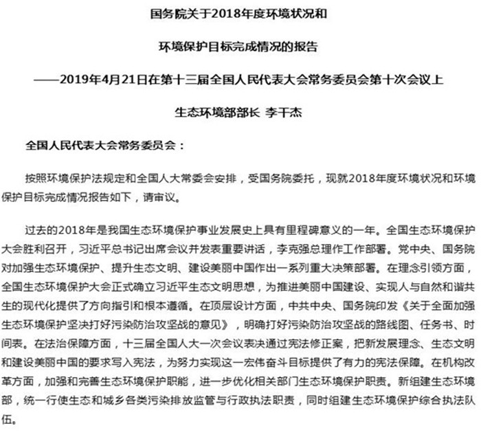 李干杰:国务院关于2018年度环境状况和环境保护目标完成情况的报告