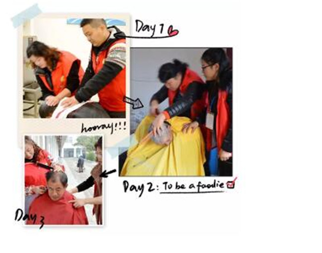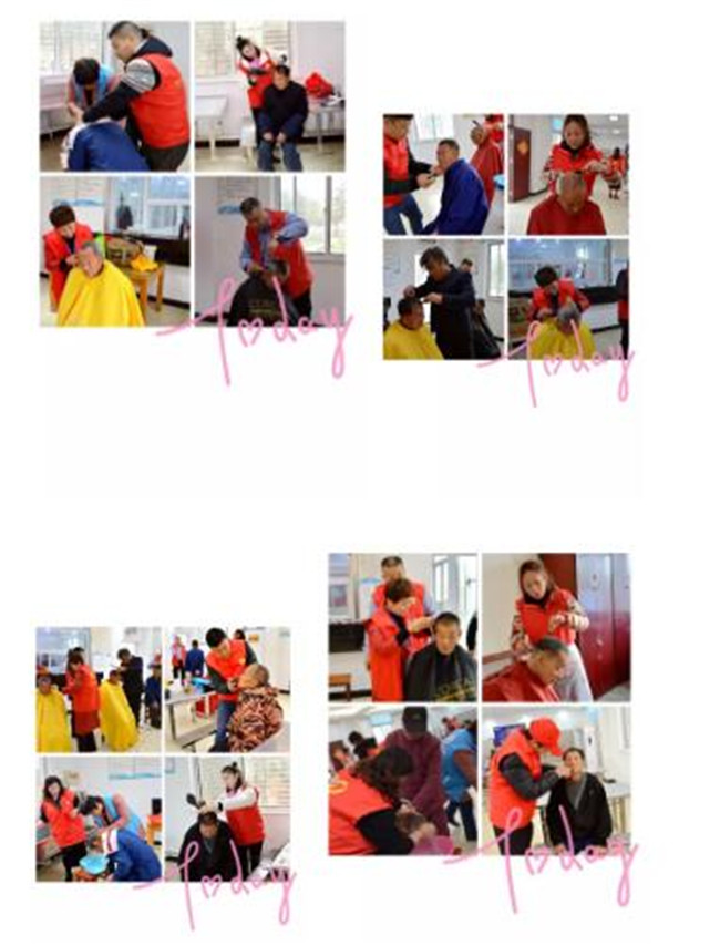 理发,他们是业余的,更是专业的。为了更好的服务老人,自己买了理发用具,自发的学习,一个个的从理发“小白”成为“能手”,分工合作,配合默契。
