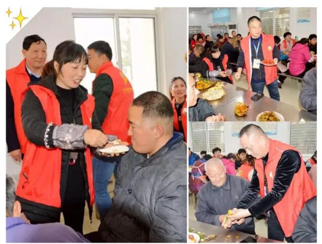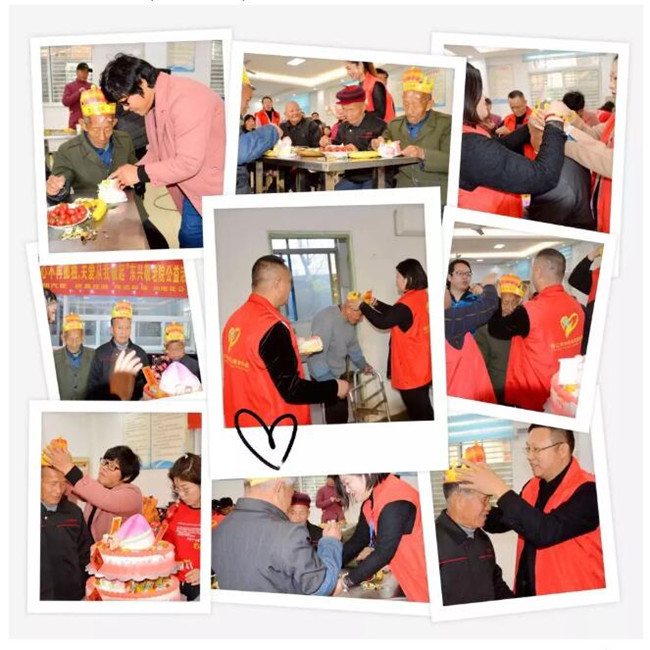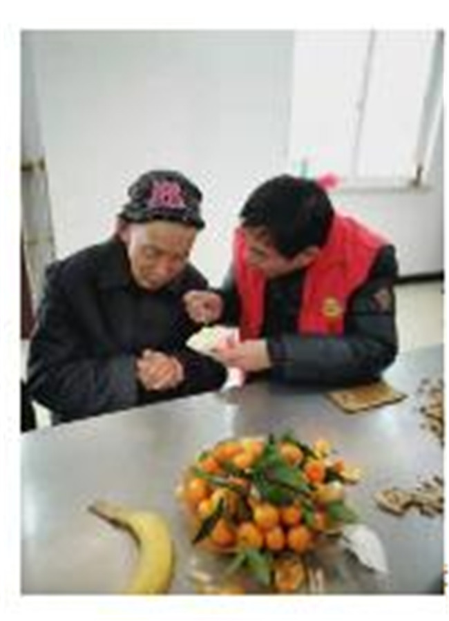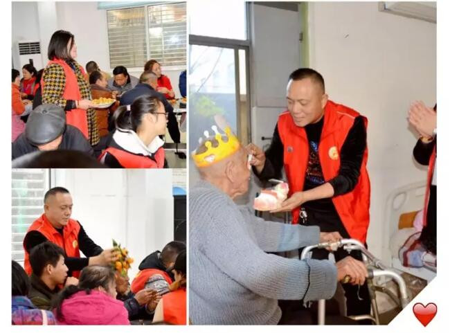 身体不好,不能来过生日吃蛋糕?肢体有残疾,不方便吃?没关系的,有他们呢。他们是热情周到的服务员。老人家,来,我来喂你,生日快乐;大叔,来,我们喂你,愿你开心。