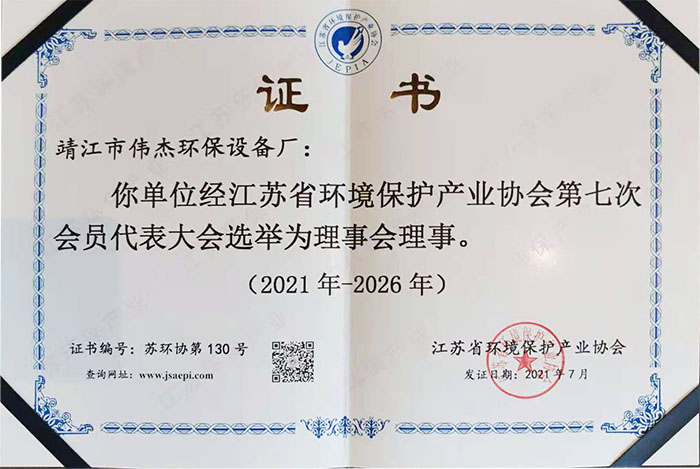 热烈祝贺伟杰环保被江苏环境保护产业协会七届理事会推选为理事单位!