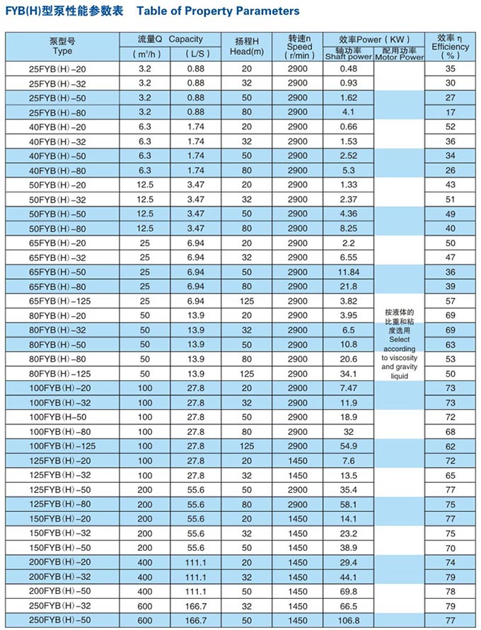 FYB(H)系列单级单吸立式液下泵。用于输送不含固体颗粒和不易结晶的有腐蚀液体。被输送介质温度-20℃~105℃,特殊需要时可为-50℃~150℃。液下泵工作部分淹没在液体内,轴封无泄漏。且占地面积小,使用可靠,维修方便,耐腐蚀性强等特点。广泛用于化工、石油等工业部门。