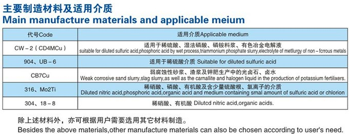 LJYA系列料浆泵为单级单吸立式悬臂式离心液下泵。叶轮为半开式,叶轮前后均配有耐磨盖,广泛应用于化工流程输送含30%以下固体颗粒,粘度低于200CP的磨、腐蚀交互作用的介质。特别适用于磷肥工业中输送磷酸、磷铵料浆等介质。